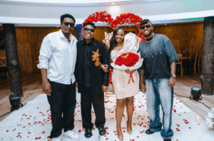 Niyo Bosco nawe wari umaze kumva ko umukunzi we ahageze, yahise akirigita umurya wa gitari amuririmbira indirimbo y’urukundo hanyuma amufata ikiganza amubaza niba koko yakwemera ko barushinga.